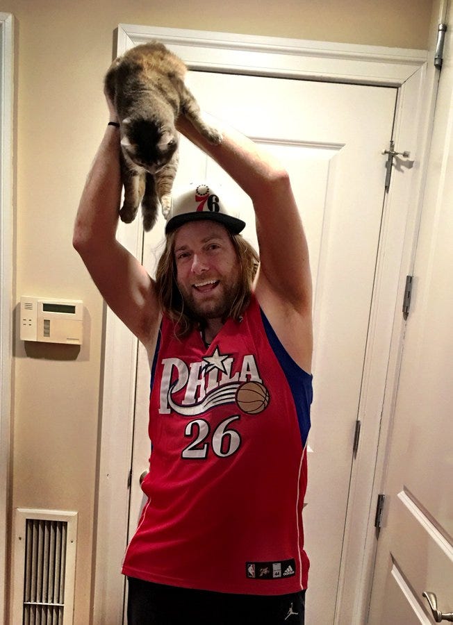 5. Since the news of his death was posted, people have been sharing their favorite McQuade stories, and the sheer breadth and variety of work he did over the years is stunning. Even as a friend who followed him through all his various blogging stops, I had underestimated the quality and quantity of his output. He inspired the Rocky Run, set Bill Cosby’s downfall in motion, documented the bizarre subculture of boardwalk t-shirts at extraordinary length, wrote beautifully about his favorite sports teams , reported on the fake epidemic of cops overdosing by touching fentanyl, met a very fat cat, documented silly sports fan trends like #Raisethecat, edited one of the best videos of Philly fans ever made, and so much more. He himself would have rolled his eyes at some of the tributes he’s getting; most blogging is, by definition, ephemeral and silly and hardly consequential. But it’s the body of work that matters. It’s the community and the spirit he built around it. Everybody who knew Dan knew a McQuade story the moment it happened.